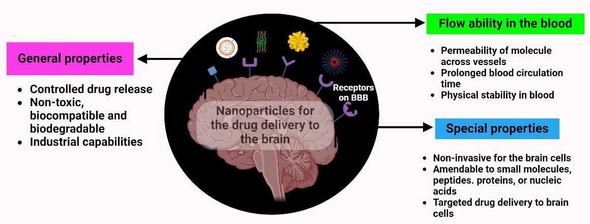 A wide variety of nanoparticles are under active investigation as nanocarriers for drug delivery, particularly for crossing the blood–brain barrier (BBB). These platforms encompass lipid-based nanoparticles, polymeric nanoparticles, metallic nanoparticles, ceramic nanoparticles, quantum dots, dendrimers, nanocapsules and nanoemulsions, each possessing distinct physicochemical properties that can be leveraged for targeted brain delivery. Although most nanoparticles do not readily breach the BBB, carriers fabricated from biodegradable polymers display superior permeability owing to their colloidal stability. These polymers can evade the reticuloendothelial system (RES), thereby extending systemic circulation and allowing the encapsulated drug to reach its site of action. Furthermore, biodegradable polymer-based nanocarriers exhibit minimal toxicity, making them a promising platform for the development of safe and effective drug-delivery systems.